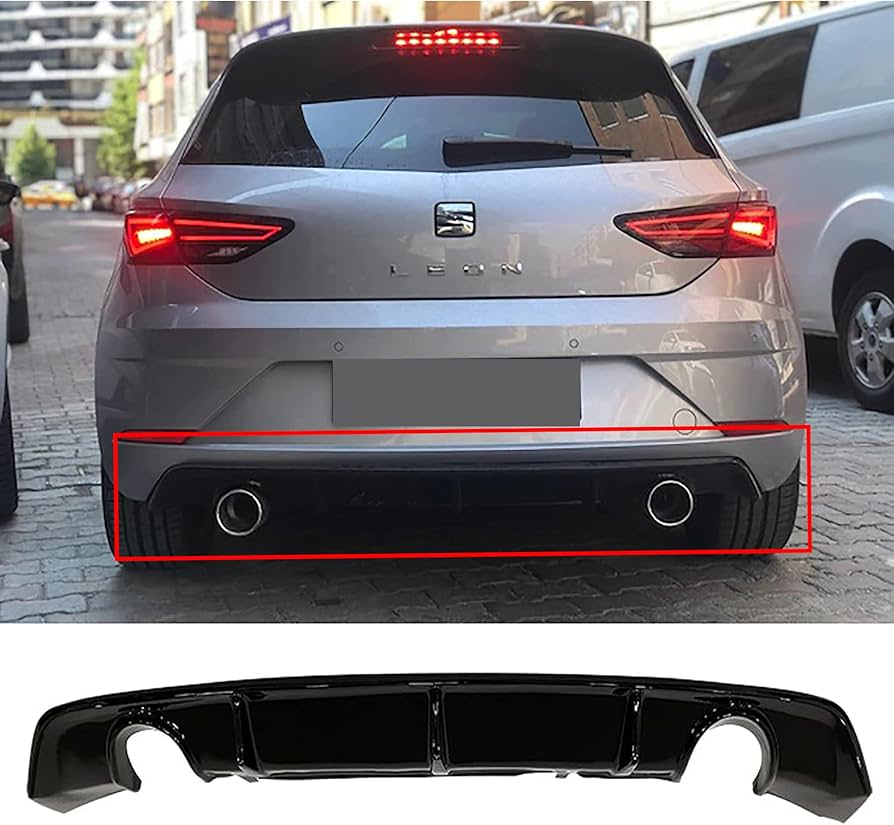 Diffuser πλαστικό μαύρο γυαλιστερό με εξάτμιση δεξιά/αριστερά για Seat Leon MK3 2017-2020.