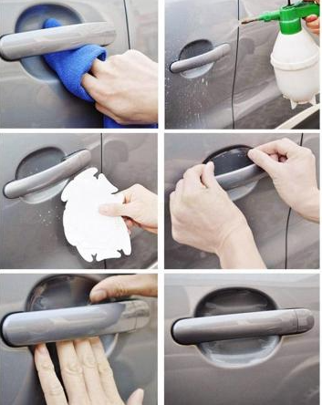 Τα προστατευτικά αυτοκόλλητα σιλικόνης carbon κολλάνε στο εσωτερικό των χειρολαβών της πόρτας του αυτοκινήτου. Χρησιμεύουν όχι μόνο σαν διακοσμητικά αλλά και προστατεύουν το χρώμα από γρατζουνιές και σκουριά. Διαθέτουν πολύ ισχυρή κόλλα στο πίσω μέρος με μεγάλη ανθεκιτκότητα. Είναι πολύ ανθεκτικά, πολύ λεπτά και αδιάβροχα.