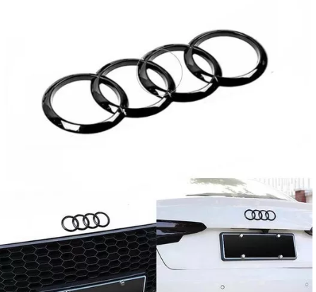 Σήμα πλαστικό μαύρο γυαλιστερό με αυτοκόλλητο 17,7x5,7cm - Audi