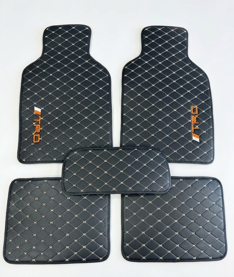 Πατάκια δερματίνη καπιτονέ μαύρο/λευκό universal με λογότυπο TRD Toyota