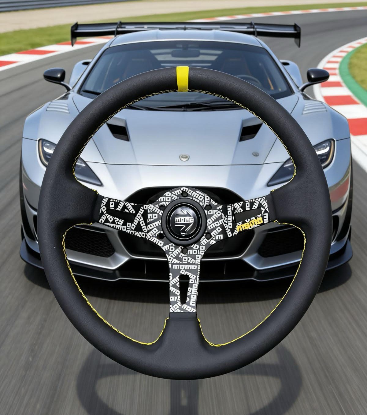 Τιμόνι αγωνιστικό βαθύκωνο δέρμα μαύρο Momo